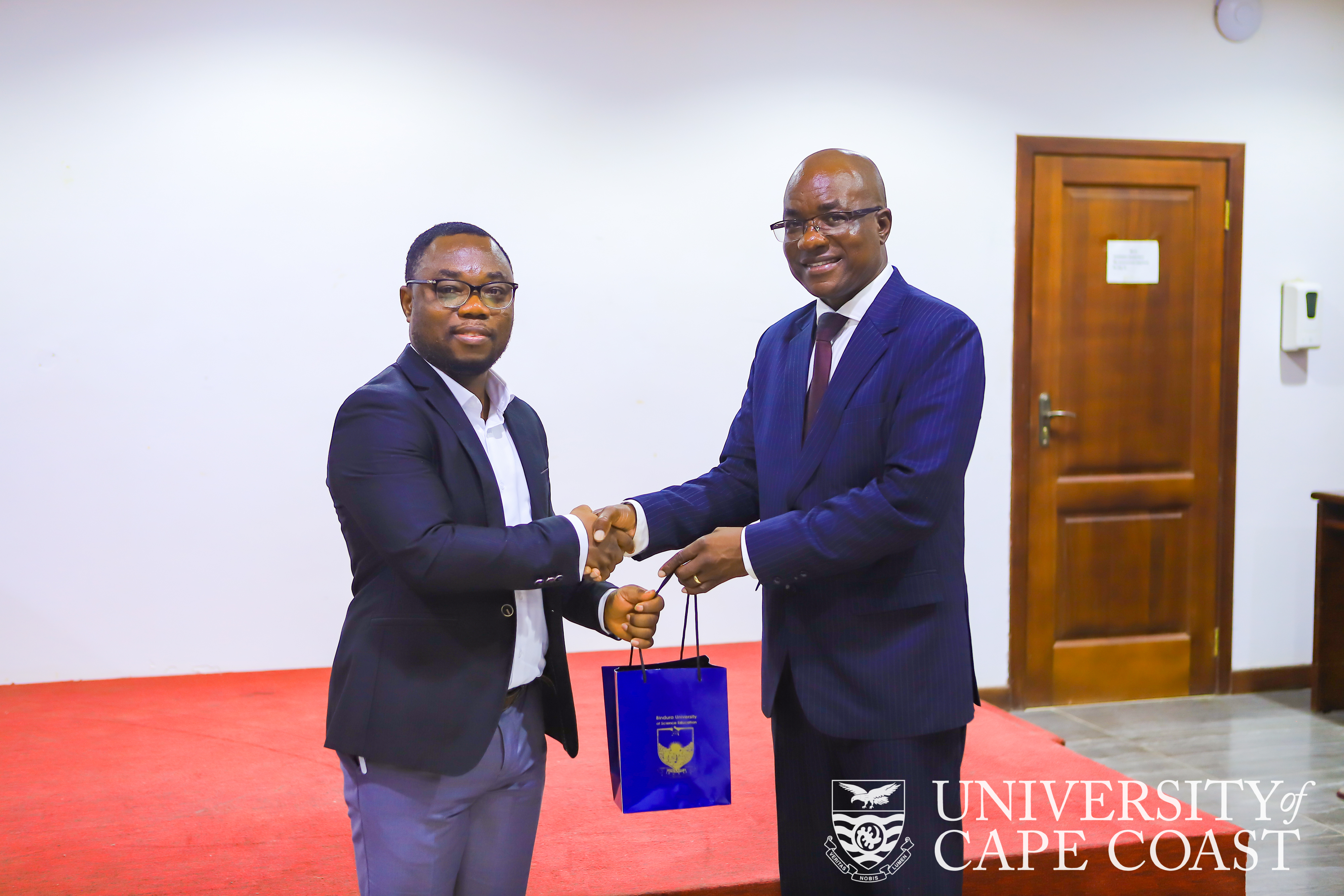 The Founding Dean of the School of Optometry and Vision Science (SOVS), Prof. Stephen Ocansey, has received the Vice-Chancellor of Bindura University of Science and Education (BUSE), Zimbabwe, Professor Eddie Mwenje, and his accompanying delegation to the University of Cape Coast (UCC).