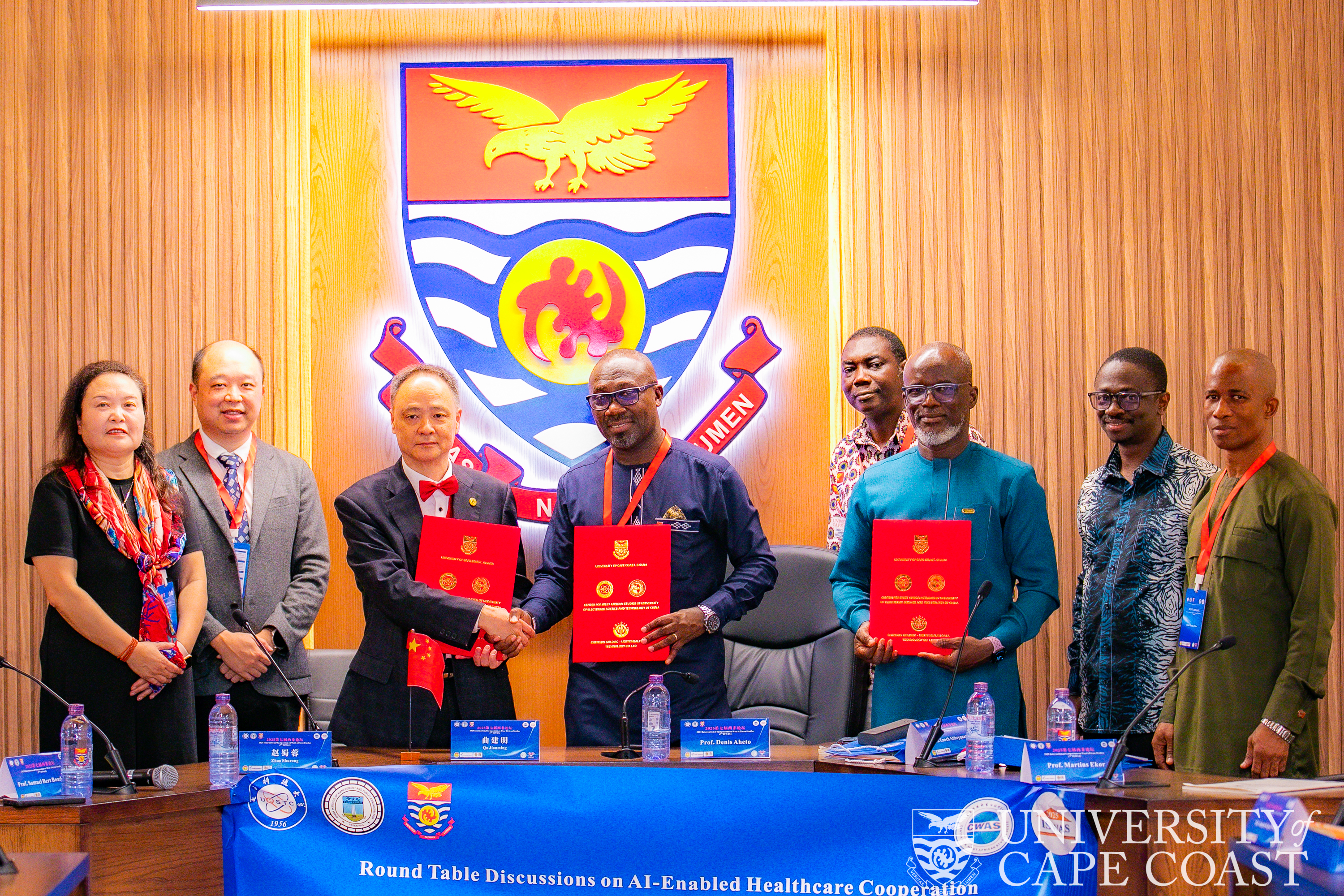 The University of Cape Coast (UCC) has signed a Memorandum of Understanding (MoU) with the Center for West African Studies at the University of Electronic Science and Technology of China (CWAS-UESTC) and Chengdu GOLDISC Health Data Technology Co. Ltd. to deepen academic and research collaboration.